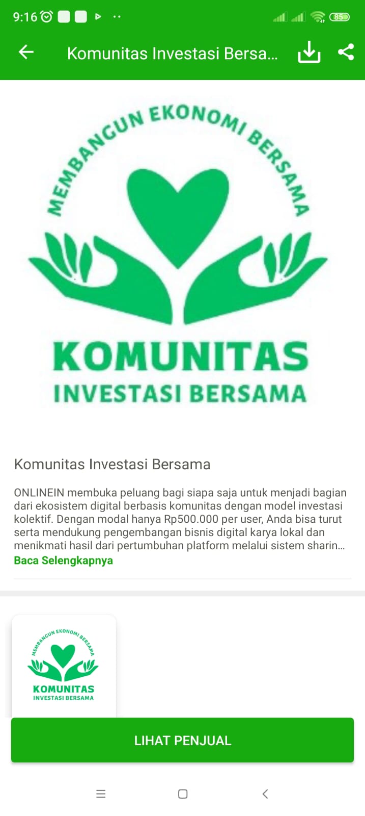 ONLINEIN membuka peluang bagi siapa saja untuk menjadi bagian dari ekosistem digital berbasis komunitas dengan model investasi kolektif. Dengan modal hanya Rp500.000 per user, Anda bisa turut serta mendukung pengembangan bisnis digital karya lokal dan menikmati hasil dari pertumbuhan platform melalui sistem sharing profit dan dapatkan profit 25k/minggu